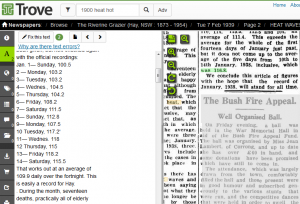 In 1894, the hottest period, strangely enough, was in November, when there were six days on end in which the thermometer went to over 100, the figures being 101, 105, 106.4, 108.2 109, and 102.