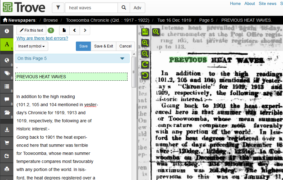 Previous Heat Waves 16 Dec 1919. 123 Deg F = 50.5 Celsius.
