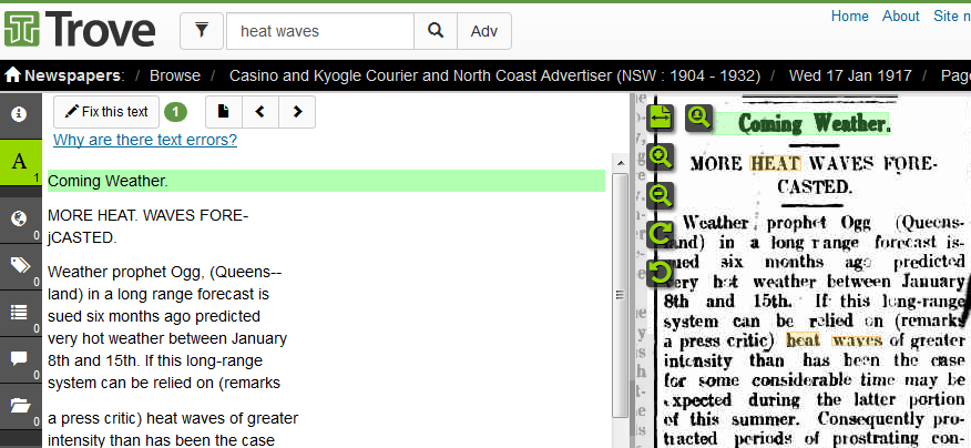 Weather prophet Ogg, (Queensland) in a long range forecast issued six months ago predicted very hot weather between January 8th and 15th. If this long-range system can be relied on (remarks a press critic) heat waves of greater intensity than has been the case for some considerable time may be expected during the latter portion of this summer.